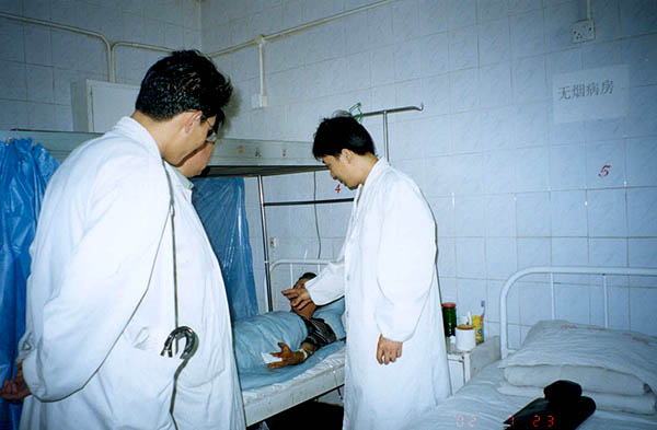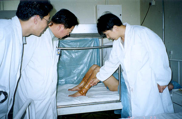 2002年7月22日,中國(guó)燒傷創(chuàng)瘍科技中心臨床總部主任王洪生應(yīng)邀到該院進(jìn)行學(xué)術(shù)交流,到達(dá)該院后他不顧高原反應(yīng),在該院燒傷科醫(yī)護(hù)人員的陪同下,首先深入病房查看了正在住院的燒傷病人,并對(duì)新入院的一例高壓電擊傷患者的臨床治療進(jìn)行了指導(dǎo),然后在醫(yī)生辦公室就徐榮祥教授近年來(lái)在燒傷皮膚再生醫(yī)學(xué)領(lǐng)域所取得的重大科技成果、深度燒傷創(chuàng)面的規(guī)范化處理、大面積燒傷的臨床救治等問(wèn)題和該院燒傷科的醫(yī)護(hù)人員進(jìn)行了交流。通過(guò)這次學(xué)術(shù)交流大家感覺收獲很大,認(rèn)為這次學(xué)術(shù)交流不但進(jìn)一步提高了臨床治療技術(shù),還及時(shí)了解了燒傷及再生醫(yī)學(xué)領(lǐng)域的最新進(jìn)展,對(duì)今后的燒傷臨床工作一定會(huì)有很大的促進(jìn)作用,我們一定要讓燒傷皮膚再生醫(yī)學(xué)之花在青藏高原上永遠(yuǎn)綻放!