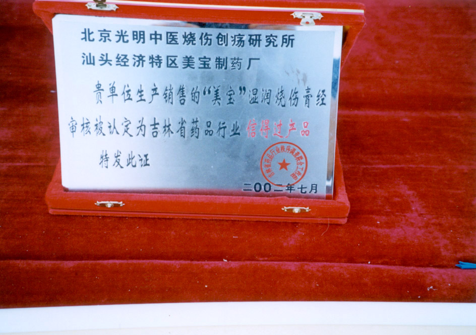 “美寶”濕潤(rùn)燒傷膏在吉林省藥品行業(yè)秩序調(diào)查活動(dòng)中被評(píng)為吉林省藥品行業(yè)“信得過(guò)產(chǎn)品”