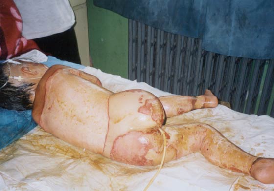 一例大面積特重度小兒柴、汽油火焰燒傷病例摘要(圖1)