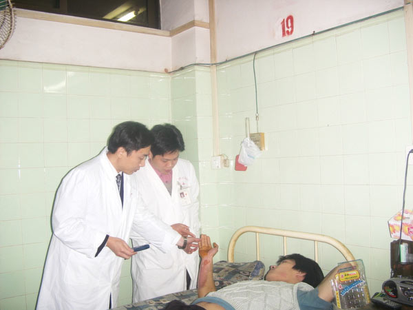 廣東省開平市第一人民醫(yī)院是中國燒傷創(chuàng)瘍科技中心在廣東省建立的第一所燒傷分中心。該院燒傷科采用燒傷皮膚再生醫(yī)療技術(shù)每年收治住院燒傷病人一百多人,臨床療效顯著,近年來先后成功治愈多例小兒和成人大面積燒傷,特別是2001年3月該院燒傷科在中國燒傷創(chuàng)瘍科技中心臨床總部專家的全程臨床指導下,采用皮膚再生醫(yī)療技術(shù)成功救治一例小兒大面積深度燒傷,取得了良好的社會效益和經(jīng)濟效益。 為加強和鞏固我國著名生命科學家徐榮祥教授發(fā)明和創(chuàng)立的再生醫(yī)學重大科技成果的臨床推廣、普及工作,促進分中心的健康發(fā)展,2002年12月10日,中國燒傷創(chuàng)瘍科技中心臨床總部主任王洪生應(yīng)邀到廣東省開平市第一人民醫(yī)院進行臨床學術(shù)交流。王主任到達該院后首先深入燒傷病房進行教學查房,并為一例已進入液化期的火焰重度燒傷病人和一例進入康復期正在應(yīng)用美寶疤痕平治療的住院燒傷病人進行了會診。然后就分中心建設(shè)等問題與燒傷科的領(lǐng)導進行了座談。 中國燒傷創(chuàng)瘍科技中心臨床部報道