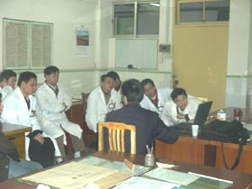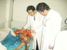 為進(jìn)一步加強(qiáng)燒傷皮膚再生醫(yī)療技術(shù)的臨床推廣和普及工作,2002年12月11日中國燒傷創(chuàng)瘍科技中心臨床總部主任王洪生應(yīng)邀到廣東省肇慶市端州紅會醫(yī)院和高要市人民醫(yī)院進(jìn)行臨床學(xué)術(shù)交流。 在肇慶市端州紅會醫(yī)院創(chuàng)傷外科,王主任在科主任壽永祿等醫(yī)護(hù)人員的陪同下,深入燒傷病房進(jìn)行教學(xué)查房,并對正在接受燒傷皮膚再生醫(yī)療技術(shù)治療的三名小兒和成人住院燒傷病人進(jìn)行了會診,為讓該科醫(yī)護(hù)人員掌握規(guī)范的創(chuàng)面處理技術(shù),王主任還親自給三名患者換藥,向他們展示規(guī)范的創(chuàng)面處理技術(shù)。