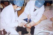 全體醫(yī)護(hù)人員在緊張有序地工作著。經(jīng)數(shù)小時(shí)行之有效的處置后,在濕潤(rùn)燒傷膏的作用下,各患者創(chuàng)面不痛了,也不呻吟了,患者親屬的急躁情緒也穩(wěn)定下來了,病房又恢復(fù)了昔日的平靜。此時(shí)時(shí)鐘已指向了凌晨3時(shí)20分,但醫(yī)護(hù)人員的搶救工作仍在有條不紊地進(jìn)行。又是一個(gè)不眠之夜...... 這就是我們醫(yī)護(hù)工作者的神圣職責(zé),這就是美寶人救死扶傷的工作精神!各位患者親屬看在眼里,感激不盡,高度贊揚(yáng)醫(yī)護(hù)人員救死扶傷的工作精神,高度贊揚(yáng)濕性醫(yī)療技術(shù)給他們的親人帶來治療上的福音! 又訊:這兩天,又有兩名患兒因開水燙傷致頭面部及軀干、四肢部大面積燙傷,例一:江浩,男,1歲2個(gè)月,燙傷總面積27%,均為深二度及三度創(chuàng)面;劉俊,男,1歲5個(gè)月,燙傷面積23%,均為深二度及三度燙傷。二例患兒均全程用濕性醫(yī)療技術(shù)治療。 中國燒傷創(chuàng)瘍科技中心臨床部報(bào)道