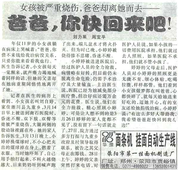 2003年4月9日南陽晚報報道: