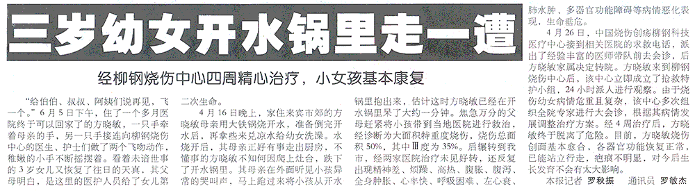 柳州晚報報道三歲幼女開水鍋里走一遭