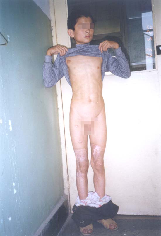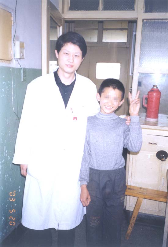 蘆嶺煤礦職工醫(yī)院的病房環(huán)境條件的確不理想,但就是在這種環(huán)境十分簡陋的條件下,該院曾經(jīng)先后成功救治了兩名80%以上的大面積重癥燒傷患者,其中一例小兒重癥燒傷患兒的治療給科室的醫(yī)生護士留下了深刻的印象,見到我們的每一名醫(yī)生護士都提到了這名患兒的成功救治經(jīng)歷。經(jīng)治醫(yī)生俞寶柱拿出了孩子受傷當(dāng)天的照片給我們看,病房條件如此簡單,在這樣一個十分簡陋的條件下救治了這么重的燒傷患者,又是個11歲的孩子,我很想親眼看看一個全身被嚴(yán)重?zé)齻幕純耗壳暗幕謴?fù)情況?我向俞醫(yī)生提出,能否找到孩子的家,到孩子家中進(jìn)行采訪的要求。要求很快被滿足,巧合的是,這個孩子的一個親戚正在外科病房住院,通過陪床家屬把孩子叫到了病房,20幾分鐘后一個活潑可愛的小男孩出現(xiàn)在我們面前,看到這個孩子,有誰能相信他曾在2年前被燒成重傷,體無完膚呢!