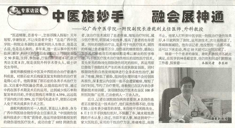 南寧晚報報道《中醫(yī)施妙手 融會展神通》