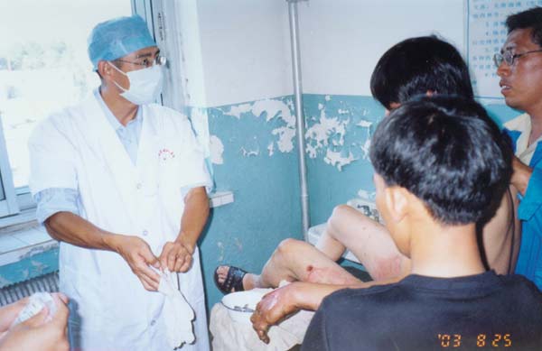 2003年8月25日,在吉林省長(zhǎng)春市省武警總隊(duì)醫(yī)院的學(xué)術(shù)報(bào)告廳里,來(lái)自長(zhǎng)春市各家醫(yī)院的30多名主任、醫(yī)師、護(hù)士們正在聚精會(huì)神地聆聽(tīng)來(lái)自中國(guó)燒傷創(chuàng)瘍科技中心臨床部陳永翀主任作學(xué)術(shù)報(bào)告。
