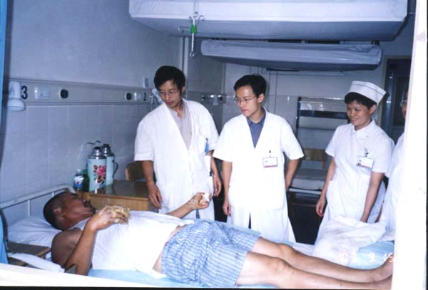 自1999年開(kāi)始,中國(guó)燒傷創(chuàng)瘍柳鋼科技醫(yī)療中心在臨床上采用燒傷濕性醫(yī)療技術(shù)對(duì)各種燒傷、燙傷、皮膚創(chuàng)傷潰瘍等進(jìn)行治療,該療法較符合燒傷發(fā)病規(guī)律和病理生理過(guò)程,具有迅速止痛,換藥治療過(guò)程中患者基本無(wú)痛苦,感染發(fā)生率低,創(chuàng)面愈合快,手術(shù)幾率低,并能達(dá)到上皮化愈合、愈后疤痕少、無(wú)功能性障礙的效果,大大減輕了患者的痛苦,同時(shí)也大幅度降低了醫(yī)療費(fèi)用(該療法較以往療法費(fèi)用減少近一半),期間收治了500多例患者,其中大面積特重度燒傷者32例(小兒18例,面積最大為85%),無(wú)一例發(fā)生意外,愈后無(wú)一例因瘢痕增生而發(fā)生功能障礙,搶救成功率99.43%,致殘率為0。特別是在2000年3月,與中國(guó)燒傷創(chuàng)瘍科技中心聯(lián)姻,在柳州市成立了首家燒傷創(chuàng)瘍治療中心,并加入了全國(guó)燒傷急救醫(yī)療網(wǎng),這標(biāo)志著柳鋼燒傷治療中心應(yīng)用燒傷濕性醫(yī)療技術(shù)逐步走向成熟,由于掌握了燒傷濕性醫(yī)療技術(shù)實(shí)現(xiàn)了燒傷皮膚器官原位再生,使其燒傷救治水平不斷接近國(guó)際先進(jìn)水平,同時(shí)技術(shù)的成熟也帶動(dòng)了學(xué)科的快速發(fā)展壯大。 目前,柳鋼燒傷中心已搬入新住院大樓,病房為標(biāo)準(zhǔn)全空調(diào)豪華病房、擁有48張病床、升降式多功能全身燒傷保暖保濕治療儀10套(可以同時(shí)收治10位特大面積燒傷患者)、同時(shí)擁有美國(guó)紐幫呼吸機(jī)、美國(guó)3F多參數(shù)心電監(jiān)護(hù)儀、美國(guó)百特?zé)齻麚尵容斠罕谩⒏哳l噴射通氣呼吸機(jī)、豪森燒傷治療機(jī)等多臺(tái)先進(jìn)設(shè)備。這將為更多的燒傷患者提供優(yōu)良的救治技術(shù)和治療環(huán)境,柳鋼燒傷治療中心是一個(gè)值得廣大患者信賴的國(guó)家正規(guī)醫(yī)療機(jī)構(gòu)。也正因?yàn)樾鞓s祥教授的再生醫(yī)學(xué)技術(shù)在柳鋼醫(yī)院得到早期的開(kāi)展和應(yīng)用,從而使柳鋼醫(yī)院在燒傷治療上再上新臺(tái)階,這不僅推動(dòng)了醫(yī)療技術(shù)的發(fā)展,也挽救了眾多燒傷患者的生命和生活。 下面是近期該院收治并獲得成功的典型病例介紹,所有患者無(wú)不對(duì)徐榮祥教授和柳鋼醫(yī)院燒傷治療中心懷有感激之情。 2001年8月2日家住柳州市郊洛容鎮(zhèn)的幼兒,唐某某,在玩耍時(shí)不慎碰倒了一鍋滾燙的開(kāi)水而將全身燙傷,傷后即送柳州市某醫(yī)院救治,第四天,患兒出現(xiàn)高熱、少尿,全身情況越來(lái)越差,后經(jīng)柳鋼燒傷中心的主任會(huì)診,會(huì)診后診斷:大面積特重度燒傷(燒傷面積約為85% TBSA,其中Ⅲ度35%, 深Ⅱ度25%, 淺Ⅱ度25%)。病情危重,患者危在旦夕,馬上組織轉(zhuǎn)院搶救,在全身治療上采用抗休克、強(qiáng)心、保護(hù)重要臟器功能及抗感染治療;創(chuàng)面治療上采取規(guī)范化的燒傷濕潤(rùn)暴露療法。柳鋼燒傷中心的主任、醫(yī)師、護(hù)士們不畏艱辛,對(duì)患兒進(jìn)行了特級(jí)護(hù)理、特別治療,經(jīng)過(guò)一周的積極搶救治療,患兒擺脫了死神,逐步脫離危險(xiǎn),住院56天創(chuàng)面愈合出院,沒(méi)有明顯的疤痕增生及功能障礙,總住院費(fèi)用為3.5萬(wàn)元。 2002年3月13日12時(shí)30分,柳鋼燒傷醫(yī)療中心收治了一位非常罕見(jiàn)的燒傷者,鋼鐵廠軋鋼工人李某某,男性,因在工作中被直徑為22mm的高溫鋼條(1200攝氏度)從右腰部L2-3椎骨旁向左上腹部穿通燒傷,約幾秒鐘后患者本能地用右手將高溫鋼條向右撥,致使右半軀干燒割橫向離斷,傷后患者倒地腸管外露,現(xiàn)場(chǎng)失血估計(jì)1500ml。病情非常危急,在院領(lǐng)導(dǎo)的指揮下,燒傷科全體人員緊急動(dòng)員,入院10分鐘后開(kāi)始手術(shù),邊止血邊探查,術(shù)中探查發(fā)現(xiàn)肝臟表面燒灼傷、十二指腸降部燒灼斷裂,橫結(jié)腸、降結(jié)腸燒灼斷裂、廣泛的小腸燒灼傷,右輸尿管燒灼傷,右半軀干的皮膚肌肉等全部組織燒灼斷裂,燒傷面積約10%,經(jīng)過(guò)夜以繼日積極有效的搶救治療,傷后50天患者的創(chuàng)面愈合,正常飲食和排便,正常行走,療效非常滿意;颊邌挝缓陀H屬一致稱贊,是燒傷中心的醫(yī)護(hù)人員給了他第二次生命,并對(duì)燒傷中心醫(yī)師護(hù)士們的高超技術(shù)表示欽佩,對(duì)他們的辛勤付出表示衷心感謝! 2002年4月28日,中國(guó)燒傷創(chuàng)瘍柳鋼科技醫(yī)療中心收治了一名來(lái)自柳州市郊區(qū)某鄉(xiāng)的三歲半的小兒黃某某。該患兒因不慎跌入廢水鍋中,而使腰背部、臀部、會(huì)陰部、腹部、右上肢及雙下肢燙傷。臨床診斷:特重度燒傷(燒傷面積約為42% TBSA,其中Ⅲ度25%,Ⅱ度17%)。傷后約兩個(gè)小時(shí)送到柳鋼燒傷治療中心,該中心的醫(yī)生、護(hù)士即采用燒傷濕性醫(yī)療技術(shù)對(duì)患兒展開(kāi)了救治,患兒安全平穩(wěn)地度過(guò)了休克期,燙傷創(chuàng)面則采用燒傷濕潤(rùn)暴露療法進(jìn)行處理,整個(gè)創(chuàng)面修復(fù)過(guò)程無(wú)感染發(fā)生,治療35天后,創(chuàng)面愈合,無(wú)功能障礙及明顯的瘢痕增生,達(dá)到了非常理想的治療效果。