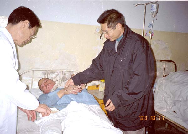 2003年10月13日上午,中國(guó)燒傷創(chuàng)瘍科技中心臨床部陳永翀主任不顧旅途的辛勞,和甘肅省的CEO黃彥勇來(lái)到了甘肅省衛(wèi)生廳,衛(wèi)生廳辦公室王彥成主任和科教處黃慕陶處長(zhǎng)熱情地接待了我們,當(dāng)他們了解了我們此行的目的和愿望后,他們都非常的興奮和激動(dòng),因?yàn)榇蠹以缇椭佬鞓s祥教授和他的燒傷濕潤(rùn)暴露療法,特別是獲知徐教授經(jīng)過刻苦的鉆研和臨床實(shí)踐,在再生醫(yī)學(xué)上取得重大成就和突破并使我國(guó)的燒傷救治和組織器官原位及體外培養(yǎng)復(fù)制技術(shù)處于國(guó)際領(lǐng)先而感到無(wú)比的自豪和驕傲,同時(shí)表示對(duì)我們的工作將給予積極支持,計(jì)劃在明年上半年組織一期全省的再生醫(yī)學(xué)和燒傷皮膚器官原位再生修復(fù)技術(shù)培訓(xùn)班。由于受到“SARS”預(yù)防工作的影響,近期不宜舉辦大型的學(xué)術(shù)活動(dòng),建議我們?cè)诟鞒鞘信e辦一些小型的培訓(xùn)和交流活動(dòng),盡快使更多的臨床工作者了解和掌握該項(xiàng)技術(shù)并應(yīng)用于臨床。