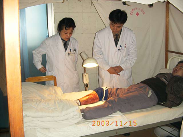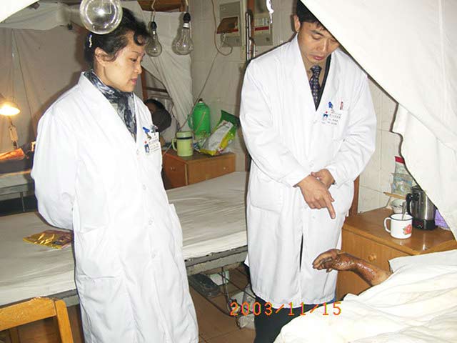 2003年11月16日,王主任又應(yīng)邀到四川省什邡市川磷燒燙傷專科醫(yī)院為正在該院住院的幾例燒傷康復(fù)期病人的防疤治療進(jìn)行了臨床指導(dǎo)。