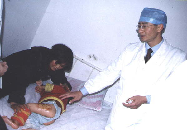 2003年12月27日上午8時(shí)(星期六),陳主任和李春鳳、何燕飛等攜帶著教學(xué)器材、培訓(xùn)教材等,驅(qū)車(chē)趕往300多公里外的位于浙江省江山市的江山化工醫(yī)院(江山燒傷分中心)共同組織舉辦江山市再生醫(yī)學(xué)培訓(xùn)班。到達(dá)該院猴,陳主任先進(jìn)行了教學(xué)查房并指導(dǎo)臨床創(chuàng)面規(guī)范處理。培訓(xùn)班于當(dāng)天下午2時(shí)在該院會(huì)議室舉行,學(xué)習(xí)班由該院朱江才院長(zhǎng)主持,參加培訓(xùn)的人員除本院醫(yī)務(wù)人員外,還有來(lái)自其他兄弟醫(yī)院的醫(yī)務(wù)人員,江山市電視臺(tái)聞?dòng)嵰才沙鲇浾叩綀?chǎng)進(jìn)行現(xiàn)場(chǎng)拍攝采訪和報(bào)道。大家聽(tīng)完報(bào)告后,決心將所學(xué)到的新知識(shí)更好地、更廣泛地應(yīng)用到臨床實(shí)踐中,為患者減輕痛苦,造福人類(lèi)。 中國(guó)燒傷創(chuàng)瘍科技中心臨床部