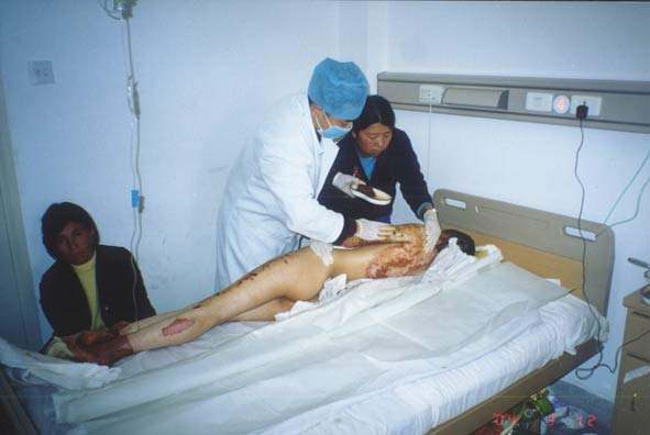 20004年3月4日,云南省大理州人民醫(yī)院收治一例小兒大面積燒傷患兒;該患兒,女,14歲,以"火焰全身多處燒傷7小時(shí)"為主訴于2004年3月4日晚11時(shí)急診收入大理州人民醫(yī)院燒傷整形科,入院診斷:1、全身火焰燒傷總面積45%TBSA(深二度25%BSA、三度20%BSA);2、中度吸入性損傷。