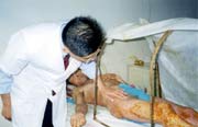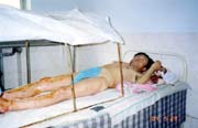 人才是根本、技術(shù)是力量、設(shè)備是條件。我院不僅注重人才的培養(yǎng)、教育,而且十分重視新技術(shù)、新療法的引進和開展應(yīng)用。開通了遠程醫(yī)療會診,經(jīng)常邀請市級、省級和國家級專家教授到我院會診和講學(xué),使我院的醫(yī)療技術(shù)水平始終處于領(lǐng)先地位。特別是1994年,我院學(xué)習(xí)、引進了我國青年科學(xué)家徐榮祥教授研制發(fā)明的"燒傷濕潤暴露療法"(燒傷皮膚再生醫(yī)療技術(shù)---BRT),成功應(yīng)用于臨床,該療法具有治療過程中病人痛苦小、愈合好、費用低、手術(shù)少、殘廢少、不毀容等優(yōu)點。近十年來我院應(yīng)用燒傷皮膚再生醫(yī)療技術(shù)成功治療各種燒傷創(chuàng)瘍患者一千多例,其中重度、特重度燒傷(30~80%TBSA)一百多例,取得了十分顯著的效果,受到了當(dāng)?shù)厝嗣袢罕娂盎颊叩囊恢潞迷u。以下是我們近期應(yīng)用燒傷再生醫(yī)療技術(shù)成功治療的幾例大面積特重度燒傷患者: 2003年7月28日,我院收治了兩例特重度燒傷患者,哥哥22歲,弟弟21歲,因工作中不慎被酸化學(xué)燒傷全身多處,哥哥的燒傷面積達80%(TBSA=80%,深I(lǐng)I度45%,淺II度35%),弟弟燒傷面積70%(TBSA=70%,淺III度8%,深I(lǐng)I度32%,淺II度30%)。入院后我們立即采用燒傷皮膚再生醫(yī)療技術(shù)進行搶救治療,給予有效的抗休克、抗感染、強心、保護臟器功能等全身治療,創(chuàng)面涂上美寶濕潤燒傷膏后,患者痛苦明顯減輕,逐漸安靜下來了。經(jīng)過40天的積極治療,創(chuàng)面不需要植皮實現(xiàn)了皮膚原位再生,沒有毀容和殘廢,兩兄弟的總費用僅3萬多元,患者、家屬、單位對治療結(jié)果非常滿意。