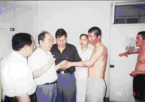 肖摩主任在燒傷病區(qū)了解淺III燒傷的治療效果 |