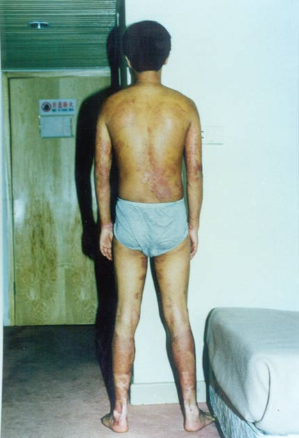 全部創(chuàng)面上皮化愈合,下肢少量深度創(chuàng)面有淺薄疤痕,無(wú)功能障礙。 |