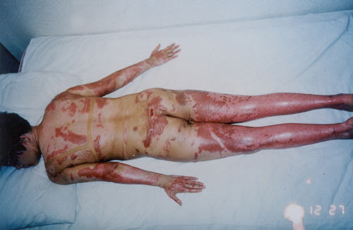 左手背及背部深度創(chuàng)面有輕度疤痕增生 |