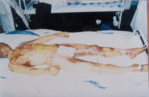 全身創(chuàng)面在一個月內(nèi)平皮愈合,無功能障礙 |